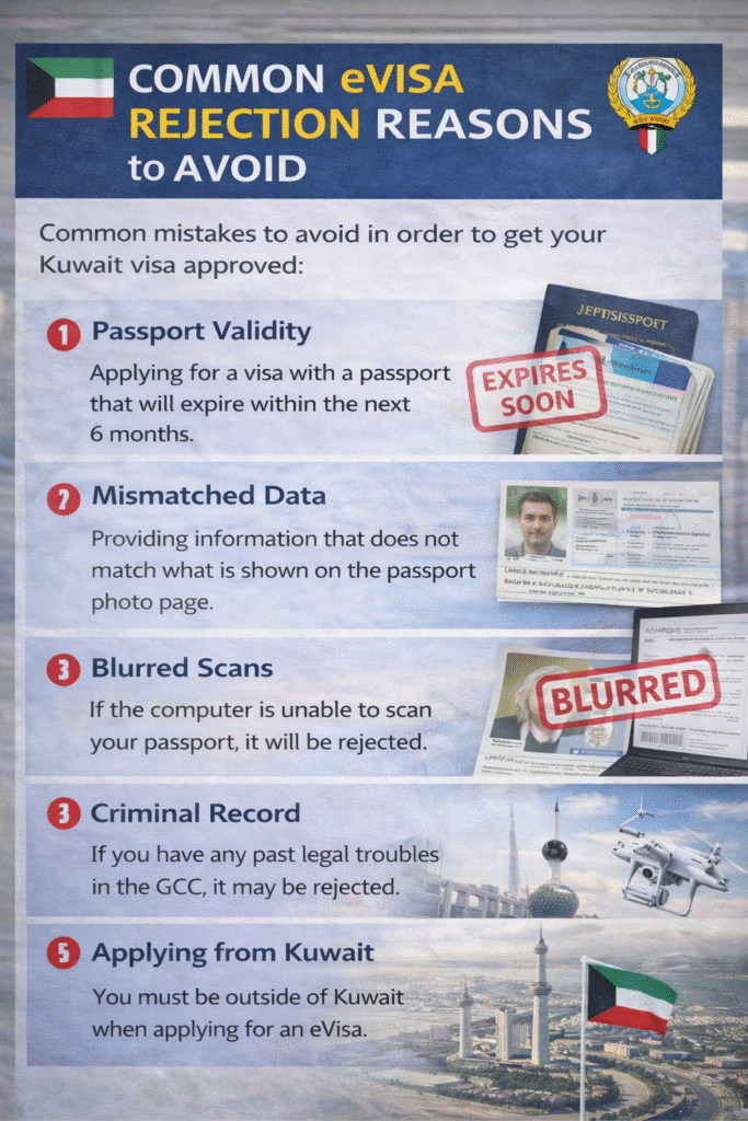 Common mistakes to avoid in order to get your Kuwait visa approved: