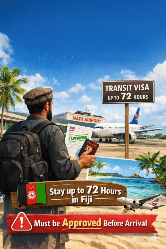 Yes, if Fiji is just a stop on your way to another country, you can apply for a Transit Visa. This allows you to stay for up to 72 hours. Even for a short stay, Afghan citizens must have this approved before arrival.