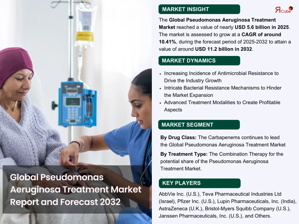 The Report Cube which is one of the leading market research company in UAE expects the Pseudomonas Aeruginosa Treatment Market to grow at a CAGR of around 10.41% through 2032, as highlighted in their latest research report. The study provides an in-depth analysis of the emerging trends shaping the Pseudomonas Aeruginosa Treatment Market and offers detailed forecasts for its potential growth during 2025–2032. The report also presents a comprehensive assessment of the competitive landscape, including profiles of leading players, their performance metrics, and recent strategic developments. Additionally, it explores the key market drivers, challenges, opportunities, and provides insights into historical and future revenue trends at the global, regional, and country levels.