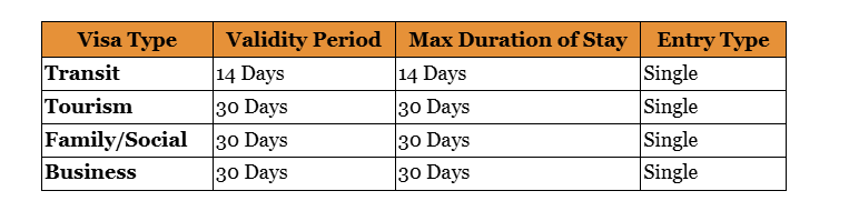 What is the Validity and Duration of Each Visa Type?