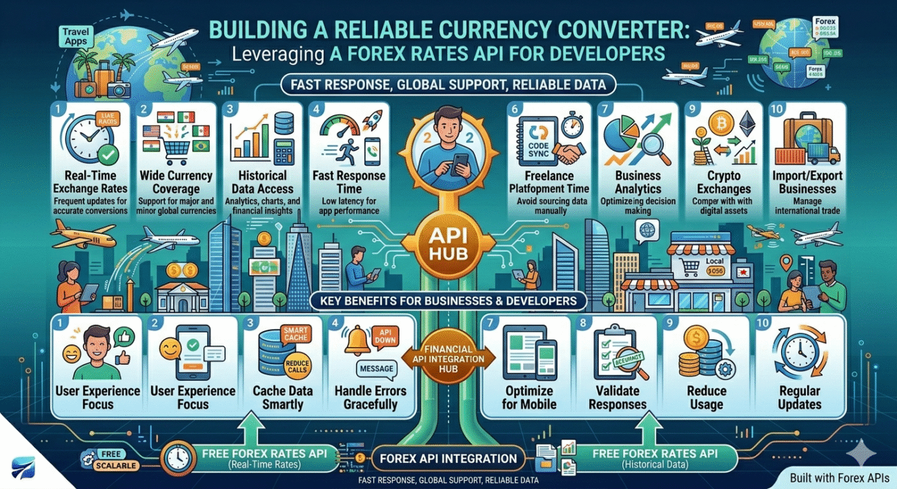Integrating a forex API into your application is one of the smartest ways to deliver accurate and real time currency data to users. By choosing the right API, focusing on performance, and optimizing user experience, you can build a powerful and reliable currency converter.