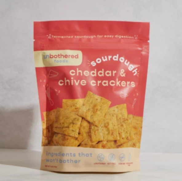 - Sourdough Cheddar & Chive Crackers – Gut-Friendly — If you like a savory, more pronounced flavor but still want a wholesome base, these cheddar-chive crackers deliver. The cheddar adds depth, while chive brings a mild oniony freshness. Their “gut-friendly” labeling suggests that they may be easier on digestion than some highly processed crackers.
